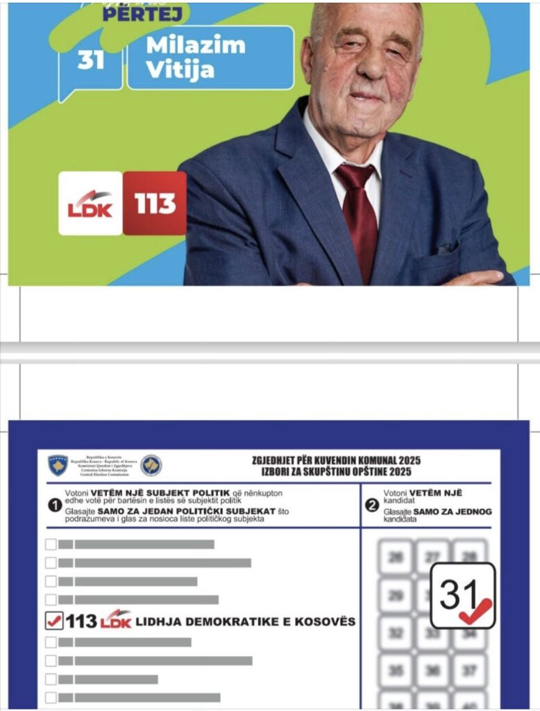 Kandidati i Lidhjes Demokratike të Kosovës (LDK), Milazim Vitija, kërkon besimin e qytetarëve për Asamblenë Komunale të Prishtinës. Vitija garon me numrin 31 në listën zgjedhore të LDK-së, të cilës i prin Përparim Rama, kandidat për kryetar të kryeqytetit.