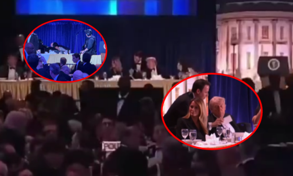 Në rrjetet sociale, tashmë janë ndarë video nga momenti, kur Trump largohet nga darka, nga shërbimi sekret.