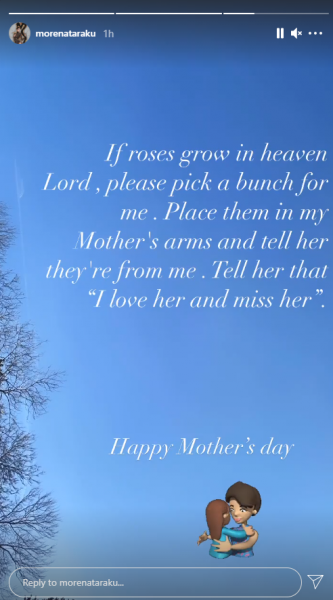 “Nëse trëndafilat rriten në qiell, Zot të lutem zgjedh një tufë për mua. Vendosi në krahët e nënës sime dhe i thuaj që janë nga unë. I thuaj që e dua dhe më mungon shumë. Urime Ditën e Nënave”, ka shkruar ajo.