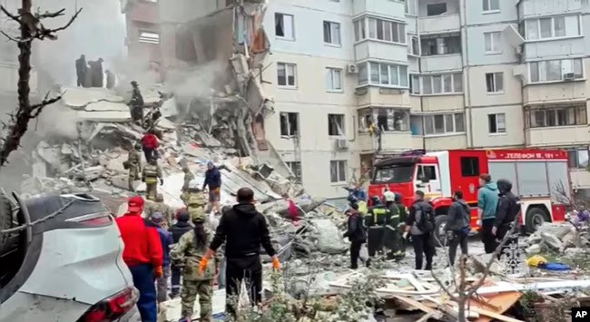 Pamje nga vendi i ngjarjes – të postuara nga guvernatori i këtij rajoni në kufi me Ukrainën, Vyacheslav Gladkov – shfaqën shembjen e së paku 10 kateve të ndërtesës.