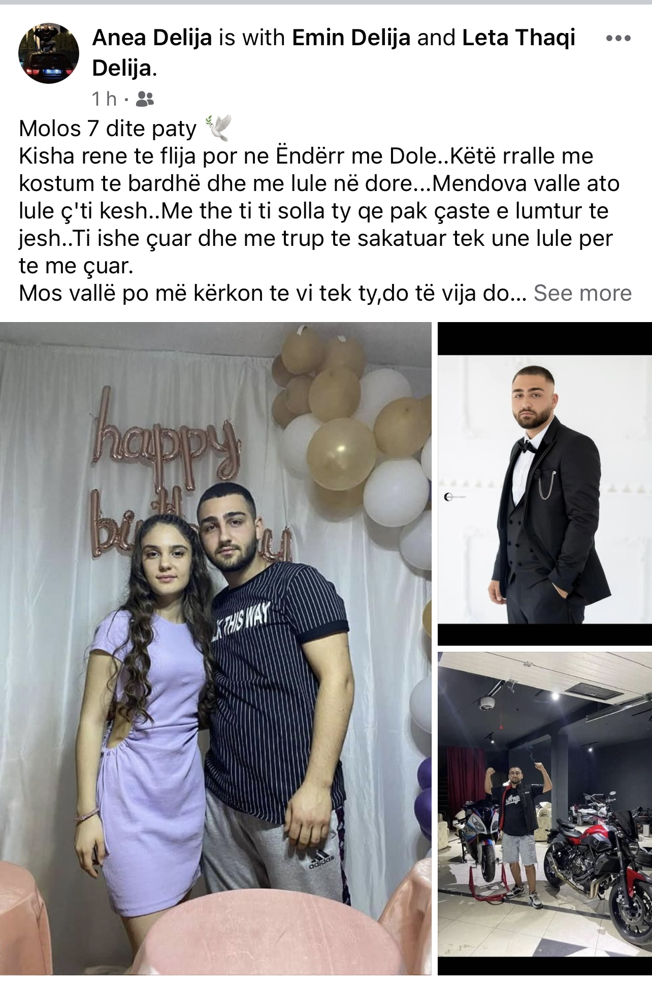 Anea Delija, vajza e Eminit dhe Violetës, kujton vëllain e saj Molosin tashmë të ndjerë me fjalët mallëngjyese në ditën e shtatë që kur humbi jetën në Autostradën “Ibrahim Rugova”.