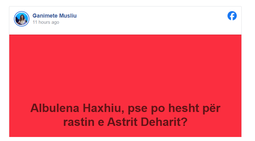 “Albulena Haxhiu, pse po hesht për rastin e Astrit Deharit”, ka shkruar ajo.