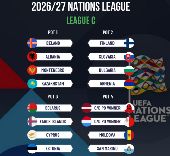 Një javë para shortit, janë përcaktuar edhe vazot e ekipeve: Kosova do të jetë në vazon e katërt të Ligës B, ndërsa Shqipëria në vazon e parë të Ligës C.
