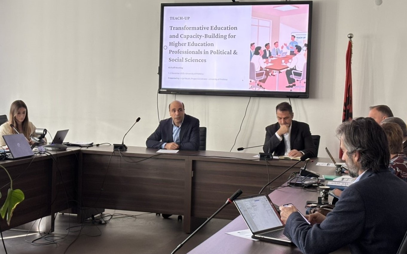 Ka nisur në Fakultetin Filozofik projekti “Teach UP Transformative Education and Capacity building for Higher Education Professionals in Political and Social Sciences” i mbështetur nga Erasmus CBHE që synon përmirësimin e mësimdhënies dhe nxënies në fushat e shkencës politike, marrëdhënieve ndërkombëtare dhe të drejtave të njeriut në universitetet e Kosovës dhe Shqipërisë.