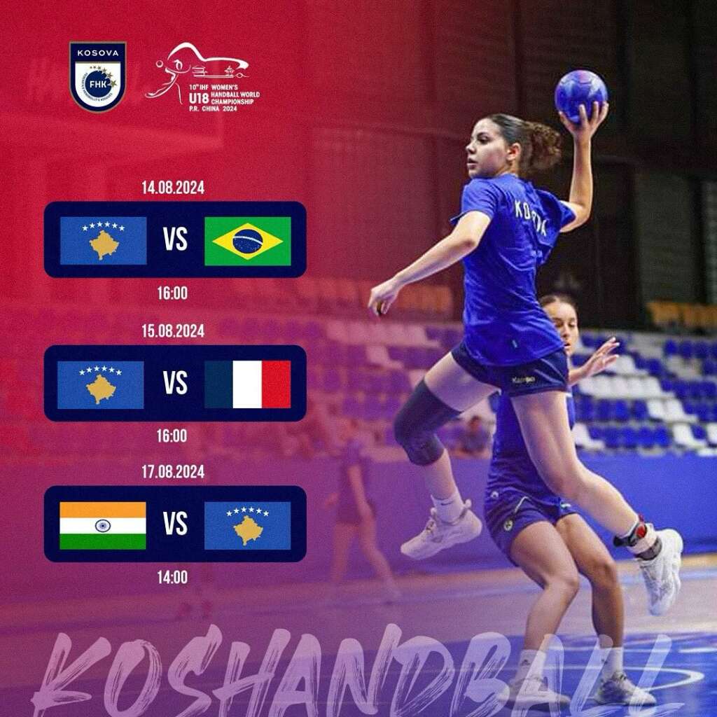 Ndërsa të enjten Kosova nga ora 16:00 përballet me Francën. Ndërkohë të shtunën e ardhshme nga ora 14:00 është ndeshja India – Kosova. Më pas janë edhe ndeshjet për plasman. Grupi është shumë sfidues, por KosovaU18 ka bërë përgatitjet e duhura për paraqitje sa më të denjë në Botëror. Paraqitja në Botërorin në Kinë është sukses tjetër historik i Federatës së Hendbollit të Kosovës.