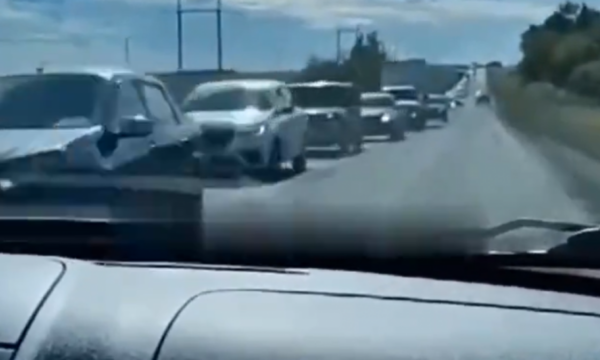 Njerëzit po ikin nga Rusia, kolona e automjeteve, mesazh domethënës