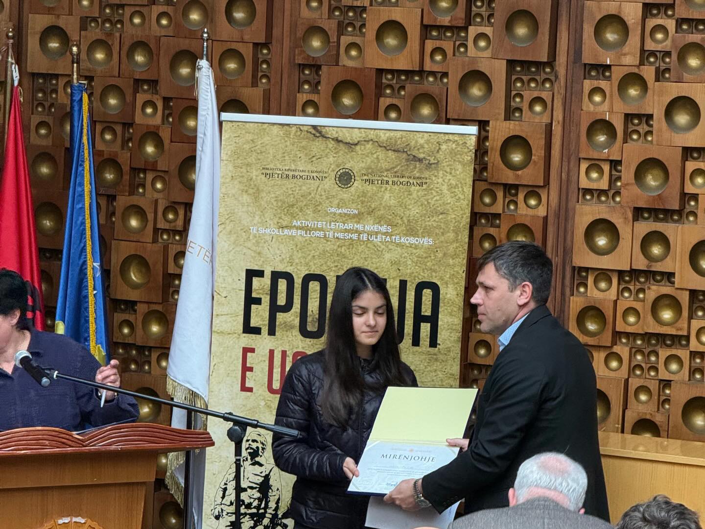 Pas vlerësimit të punimeve të konkursit letrar shpallur muajin e kaluar, juria e këtij konkursi ka dhënë tri mirënjohje për tri çmimet e para për poezi, ese dhe tregim, për nxënësit: Edita Ismajli, Hana Tetova dhe Eris Laqi.