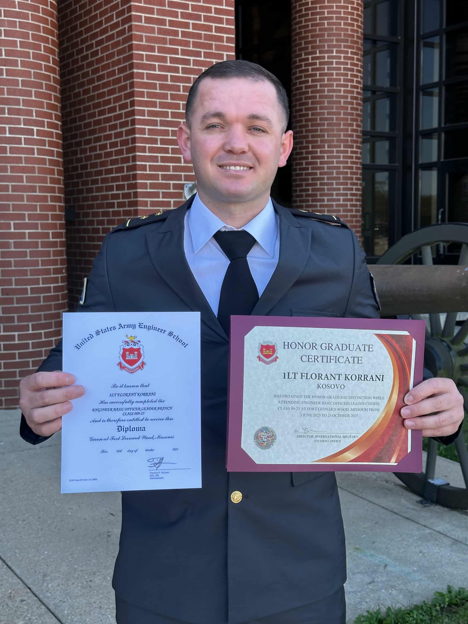 Togeri i Forcës së Sigurisë së Kosovës (FSK), Florent Korrani, ka diplomuar në trajnimin bazik për Inxhinieri Ushtarake, në Fort Leonard Wood të Shteteve të Bashkuara të Amerikës.