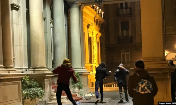 Gjatë protestës, një grup personash të maskuar kanë tentuar të hyjnë në Kuvendin e Beogradit, kanë thyer xhamat dhe dyert, ndërsa policia brenda ndërtesës ka hedhur gaz lotsjellës ndaj tyre.