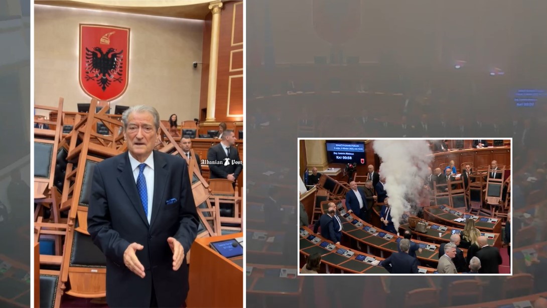 Opozita shqiptare përmbys sërish sallën e Parlamentit dhe ndez tymues
