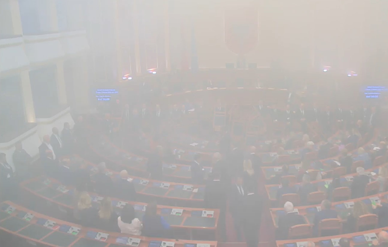 Veçse, në çastin e hapjes së seancës nga kryetarja e Parlamentit, Lindita Nikolla, opozita ka ndezur dy tymuese në sallë, duke shkaktuar kaos.