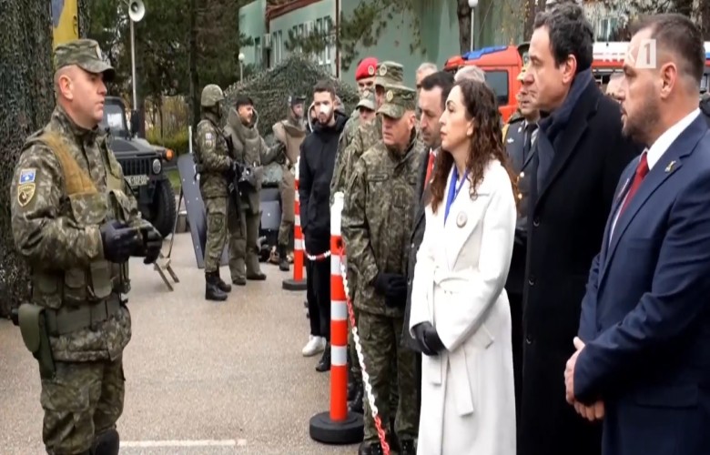 Presidentja Vjosa Osmani, kryetari i Kuvendit Dimal Basha dhe kryeministri në detyrë, Albn Kurti janë duke vizituar nga afër kazermën kryesore të Forcës së Sigurisë së Kosovës, “Adem Jashari”, me rastin e “Ditës së Forcës”.