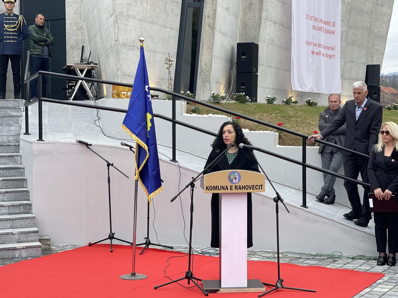 Presidentja e Kosovës, Vjosa Osmani, ka kërkuar drejtësi për masakrën e Krushës së Madhe të Rahovecit, ku janë vrarë 243 persona, ndërsa 893 shtëpi private dhe shoqërore janë djegur.