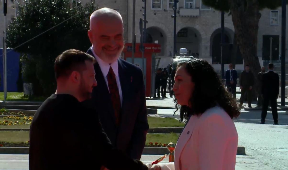 Kryeministri i Shqipërisë, Edi Rama, së bashku me presidentin e Ukrainës, Volodymyr Zelenskyn e kanë pritur presidenten e Kosovës, Vjosa Osmani, në kuadër të samitit për Ukrainën.