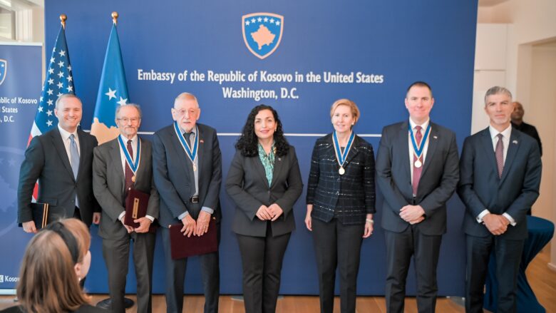 “Për këtë kontribut, sot, në Washington D.C., pata nderin që, në emër të Republikës së Kosovës, t’i dekoroj me Urdhrin e Lirisë dhe Urdhrin e Pavarësisë”.