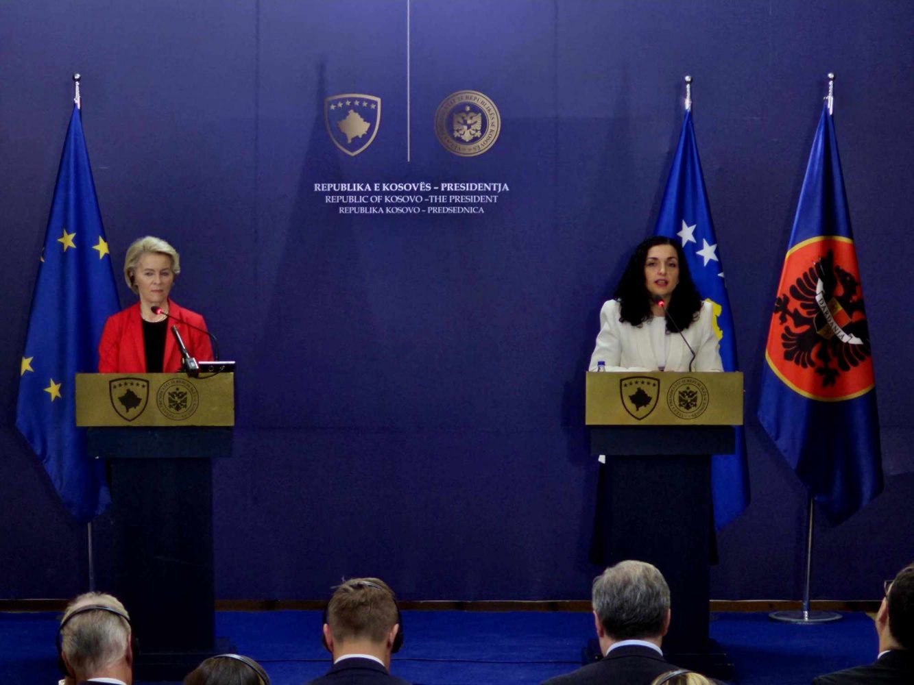 Më tutje, Osmani ka thënë se Kosova ka qëllim anëtarësimin në BE dhe NATO, derisa ka kërkuar mbështetjen e Ursula von der Leyen.