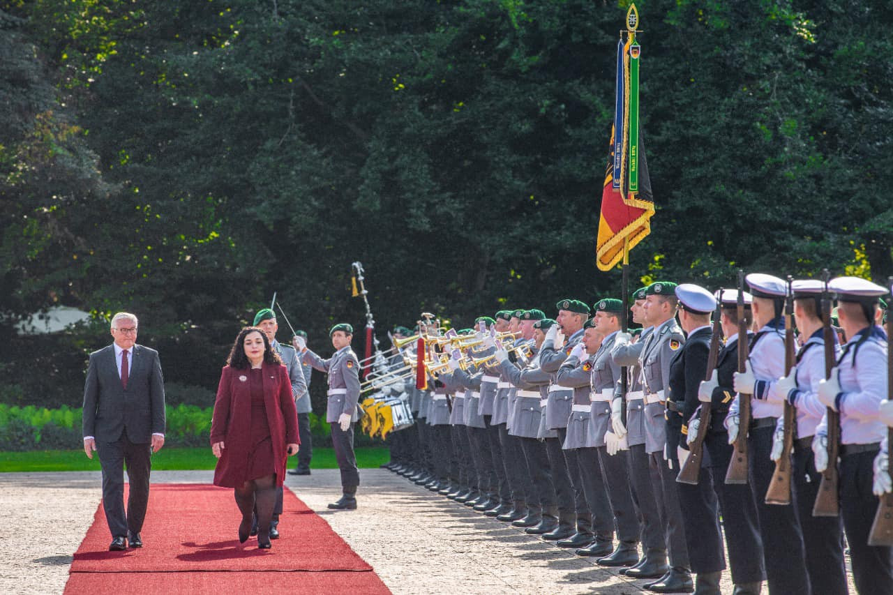 Ndryshe, presidentja Osmani vizitën zyrtare bilaterale në Gjermani me ftesë të presidentit Steinemier e ka realizuar në shtator të vitit 2021 ku është pritur me nderime ushtarake.
