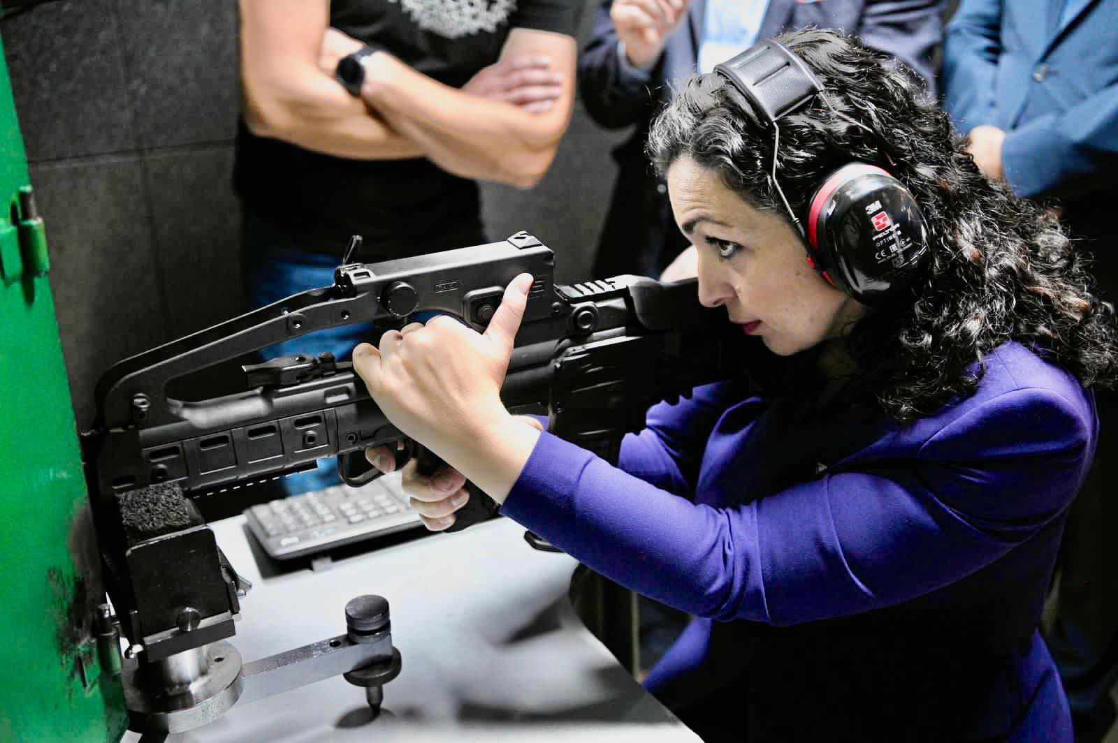 Osmani viziton kompaninë për prodhimin e armëve në Kroaci, kap armën në dorë