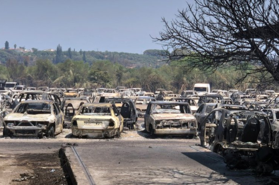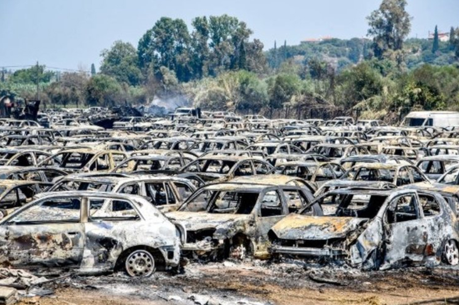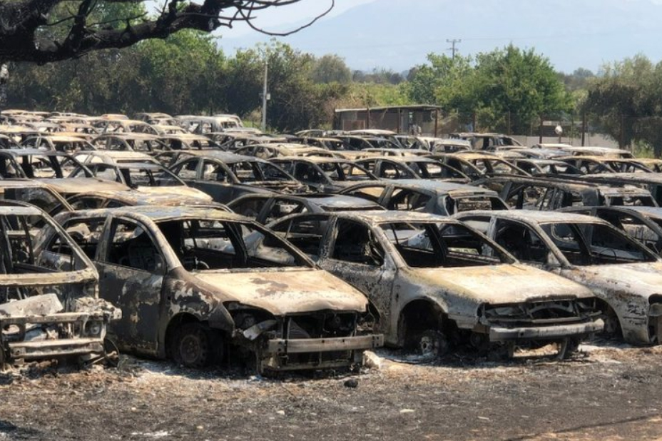 Pamje apokaliptike nga zjarret në Greqi, shkrumbohet parkingu me qindra makina