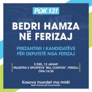 PDK-ja sot do të mbajë tubim me qytetarët në Ferizaj.