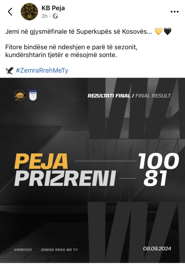 KB Peja ka arritur në gjysëmfinale të Superkupës së Kosovës në basketboll.