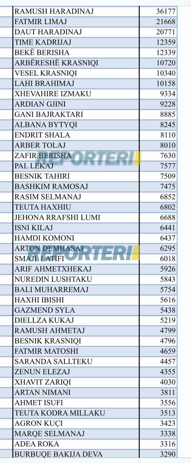 Ramush Haradinaj ka marrë 36 mijë e 177 vota.