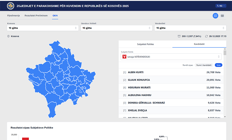 Më 28 dhjetor Kosova mbajti zgjedhjet e parakohshme parlamentare. Tashmë ka nisur procesimi i votave të numëruara të kandidatëve për deputetë.