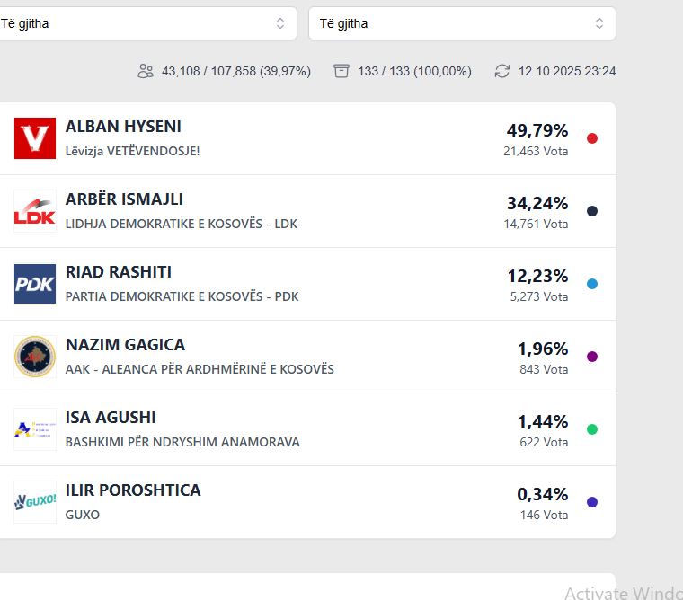 Komisioni Qendror i Zgjedhjeve vazhdon të përditësojë rezultatet e zgjedhjeve të 12 tetorit.