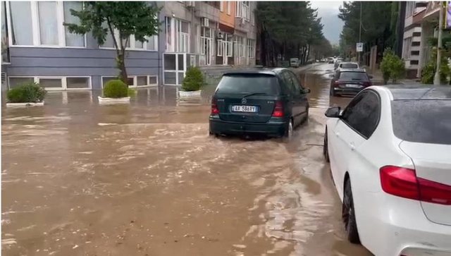 Sasia e mashe e reshjeve ka bërë që kolektorët mos të përballojnë prurjet duke shkaktuar përmbytjet e disa rrugëve në qytet.