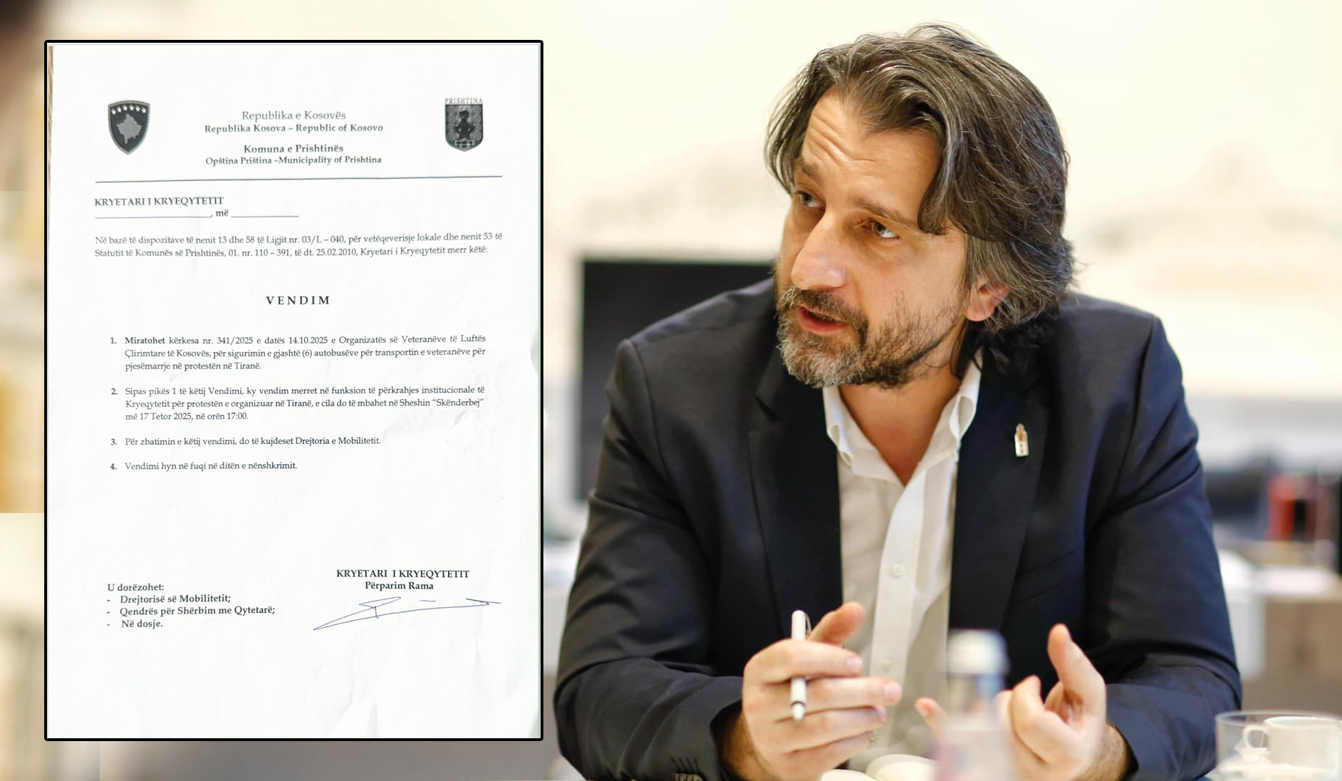 Kandidati i LDK-së për kryetar të Prishtinës, Përparim Rama, ka njoftuar se ka nënshkruar vendimin për të siguruar transportin për veteranët e UÇK-së që do të marrin pjesë në protestën gjithëkombëtare më 17 tetor në Tiranë, raporton GazetaBlic.