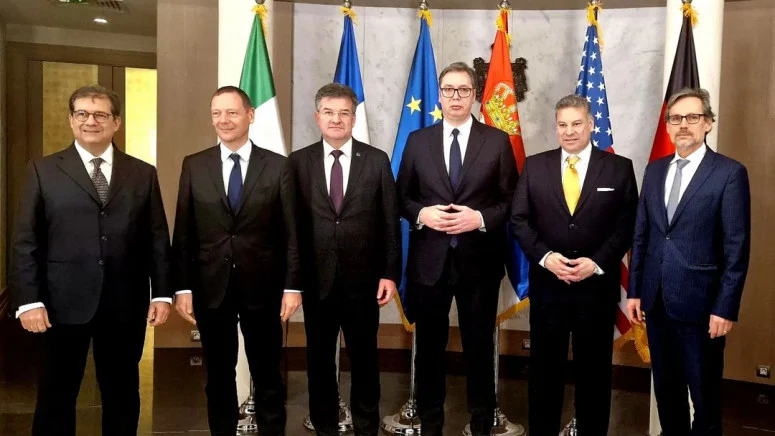 Ekipi pesë anëtarësh ka qenë në Serbi më 20 janar, kur gjatë bisedës me presidentin Vuçiq, i kishte vendosur ultimatum Serbisë – pranimin e planit gjermano-francez, gjegjësisht evropian, për të cilin më vonë është dakorduar edhe në Ohër.