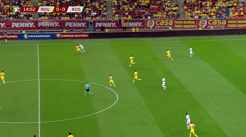 Ndeshja e grupit I kualifikuese për Kampionatin Evropian ka qenë mjaftë interesante ku nuk mungojë edhe një ndërprerje nga gjyqtari si pasojë e sjelljes se tifozëve rumunë të cilët shfaqen një baner ku thuhej “Kosova është Serbi”. Ndeshja rifilloi dhe Kosova është paraqitur mirë duke krijuar dy raste të mira shënimi, por të cilat nuk i konkretizuan në gol Vedat Muriqi dhe Edon Zhegrova.