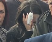 Publikohen pamje nga varrimi i stilistit Isufi, bashkëshortja e tij me dorë të fashuar