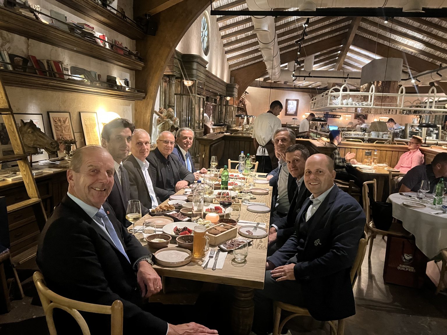 Presidenti Agim Ademi sipas traditës, në prag të ndeshjes kualifikuese për Euro 2024, Kosovë – Zvicër, ka shtruar darkë për delegacionin e Federatës Zvicerane në krye me presidentin Dominique Blanc, ku të pranishëm ishin edhe ambasadori zviceran, Thomas Kolly dhe delegati i UEFA-s, Jan Willem.