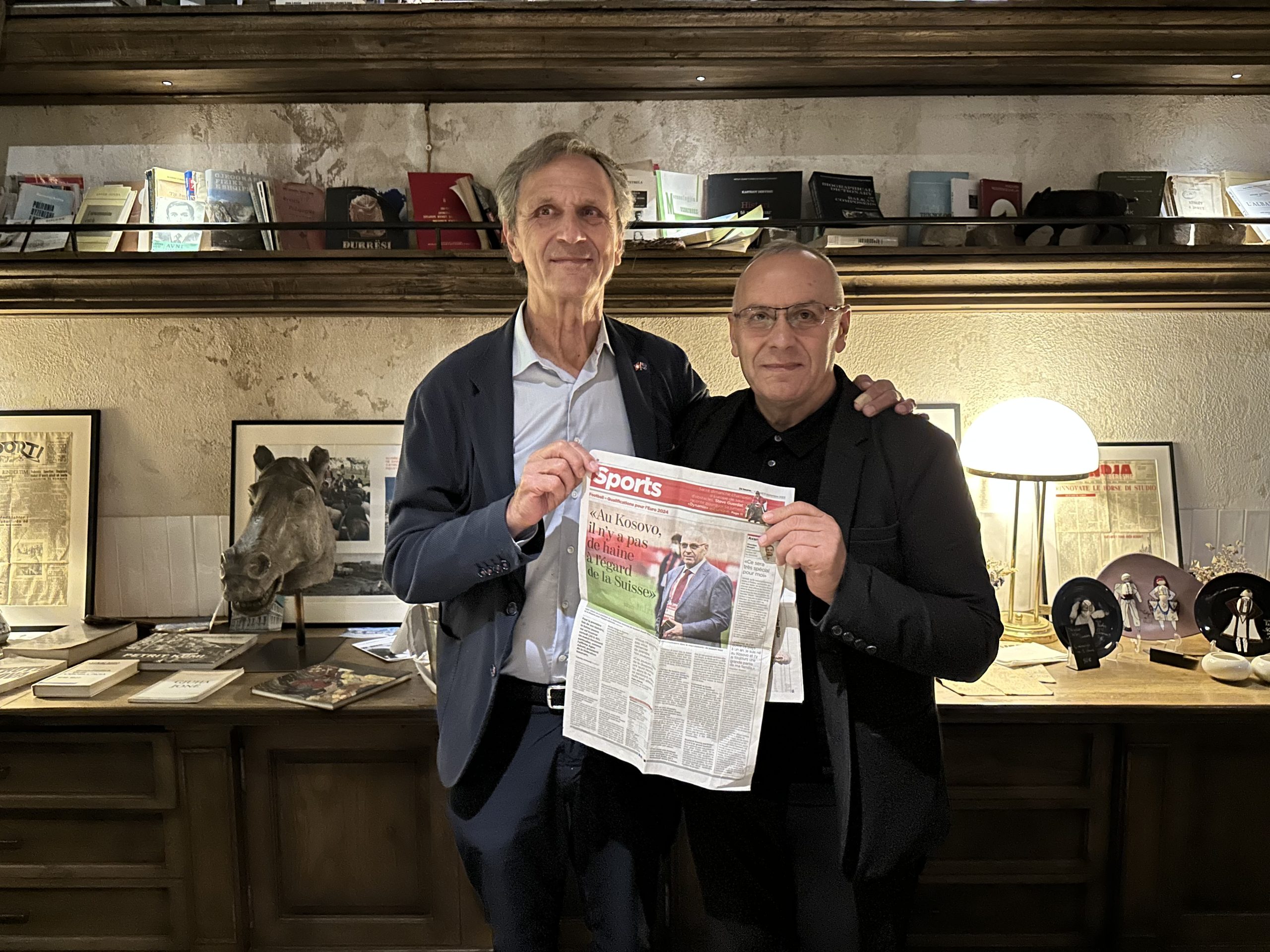 “Ylli i ditës sot në Zvicër ka qenë presidenti juaj, Agim Ademi”, tha Blanc, teksa bëri edhe një dhuratë të veçantë për kreun e FFK-së. Në fund të dy presidentët e uruan njëri – tjetrin për lojë sa më të mirë në ndeshjen e nesërme dhe spektakël futbolli.