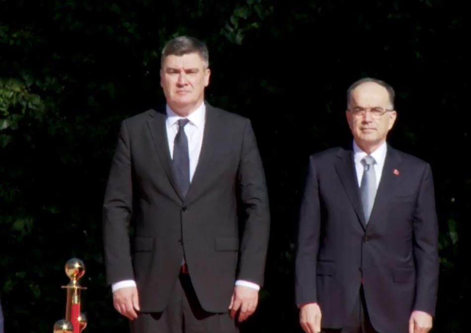 Presidenti i Kroacisë mbërrin në Shqipëri, pritet me ceremoni zyrtare (video)