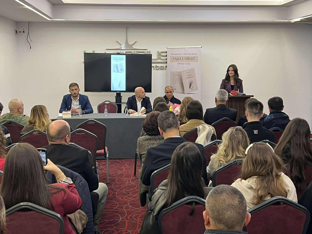 Letërsia shqipe u pasurua me një zë të ri, të brishtë e njëkohësisht të guximshëm. Erblina Luma ka promovuar sot librin “Vajza e Diellit”, e cila përmbledh 78 poezi, të ndara në dy pjesë me nga pesë kapituj secila, ku shpalosen tema që prekin thelbin e ekzistencës lindjen, vdekjen dhe ringjalljen. Në promovimin e librit të saj, autorja Luma theksoi ngjyrimin personal dhe simbolikën e veçantë të veprës. ‘Vajza e Diellit’ për mua ka një rendësi të veçantë. Është një libër me shumë shenja autobiografike. Libri hapet me një thënie që definon mënyrën si unë e shoh jetën dhe rrugëtimin tim. Pas thënies vjen një poezi ode për një vegim. Libri ka dy ndarje me dhjetë kapituj, pesë prej tyre janë më ndër-personal… Mendoj që kudo që ndodhet arti na frymëzon të gjithëve, nëse diçka keni të merrni prej këtij libri, do të frymëzoheni për diçka”, tha Luma.