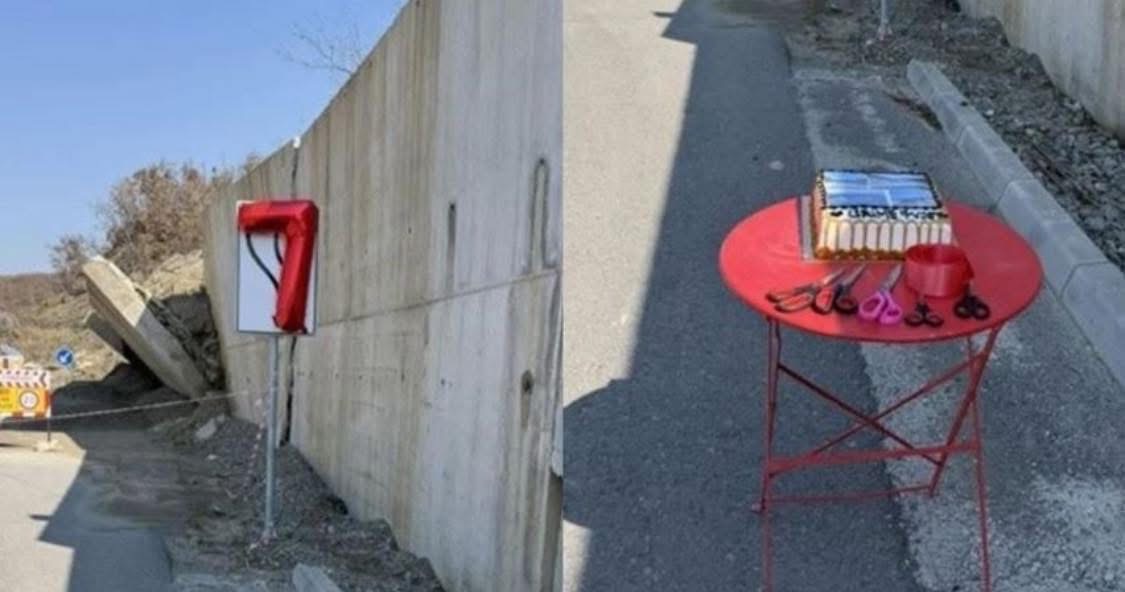 Në rrugën Gjakovë–Dollc, një aksion simbolik i pazakontë tërhoqi vëmendjen e qytetarëve të dielën. Protestuesi Ideal Zhaveli vendosi një tortë pranë punimeve të rrugës, me mbishkrimin “Urime 7 vjet”, duke ironizuar zvarritjen e gjatë të projektit që ende nuk ka përfunduar.