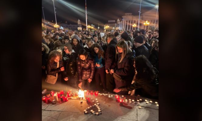 Një protestë paqësore është mbajtur mbrëmjen e së martës në Shkup për të nderuar viktimat e tragjedisë së Koçanit.