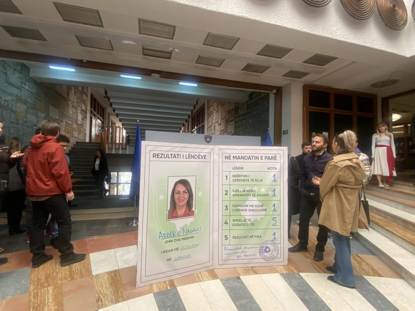 Aktivistë të Partisë Socialdemokrate (PSD), kanë zhvilluar një aksion në Bibliotekën Kombëtare kundër ministres së Arsimit, Arbërie Nagavci, të cilën e vlerësuan me notë negative.