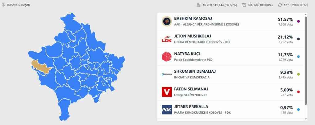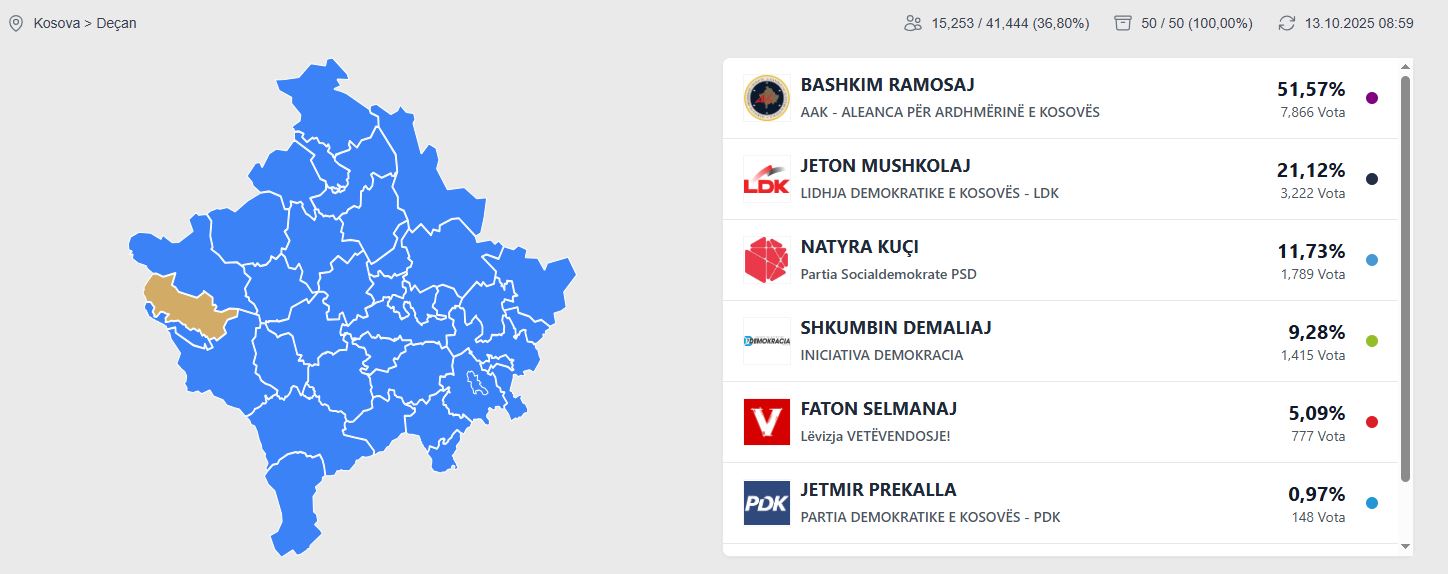 Ramosaj, sipas rezultateve preliminare të KQZ-së, ka fituar kryesinë e kësaj komune pa balotazh, teksa ka marrë 51.57% të votave.