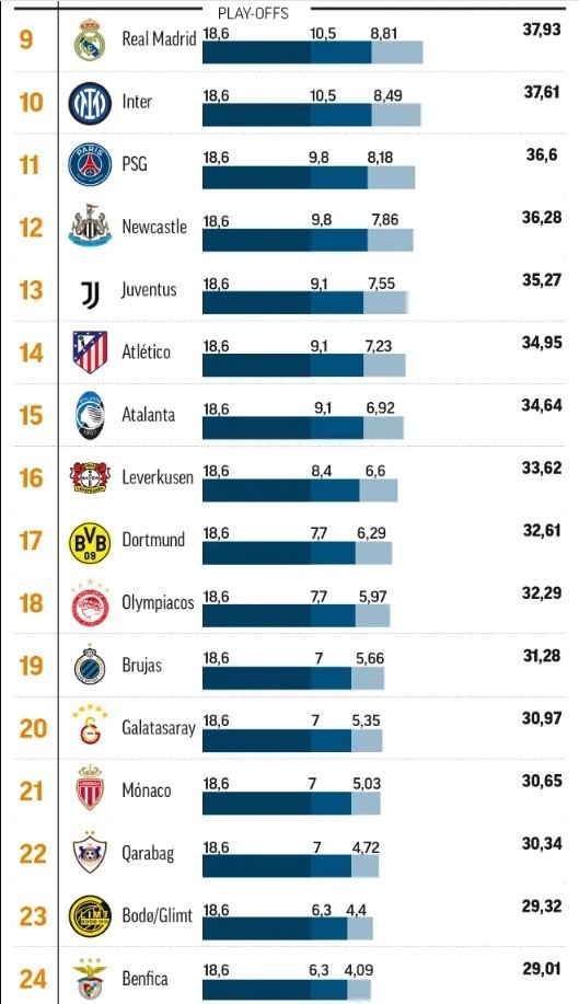 Fituesit e ndeshjeve play-off midis 16 ekipeve të renditura nga vendi i 9-të deri në të 24-tin, të cilat do të garojnë ekipi si Real Madridi, Interi dhe Juventusi, do të marrin një bonus prej 1 milion eurosh.