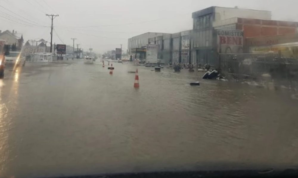 Në rrugën Prishtinë – Ferizaj, ka grumbullim të ujit si pasojë e kyçjeve ilegale në kanalet atmosferike, për çka është bllokuar qarkullimi.