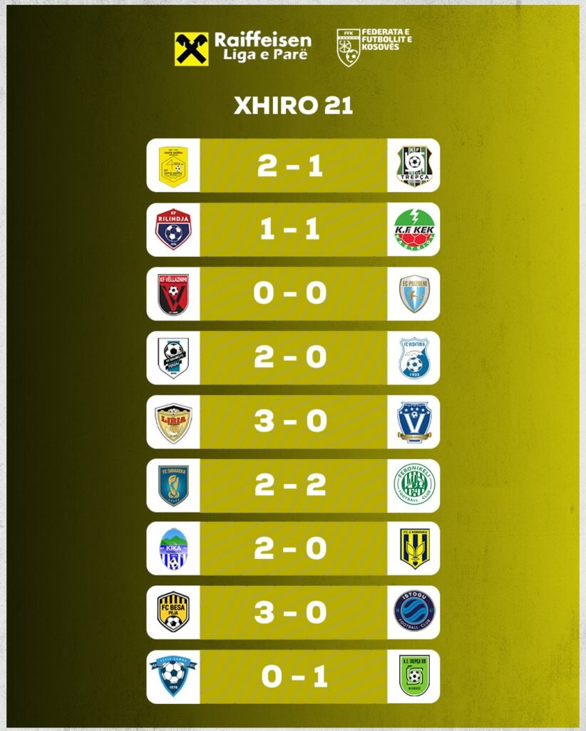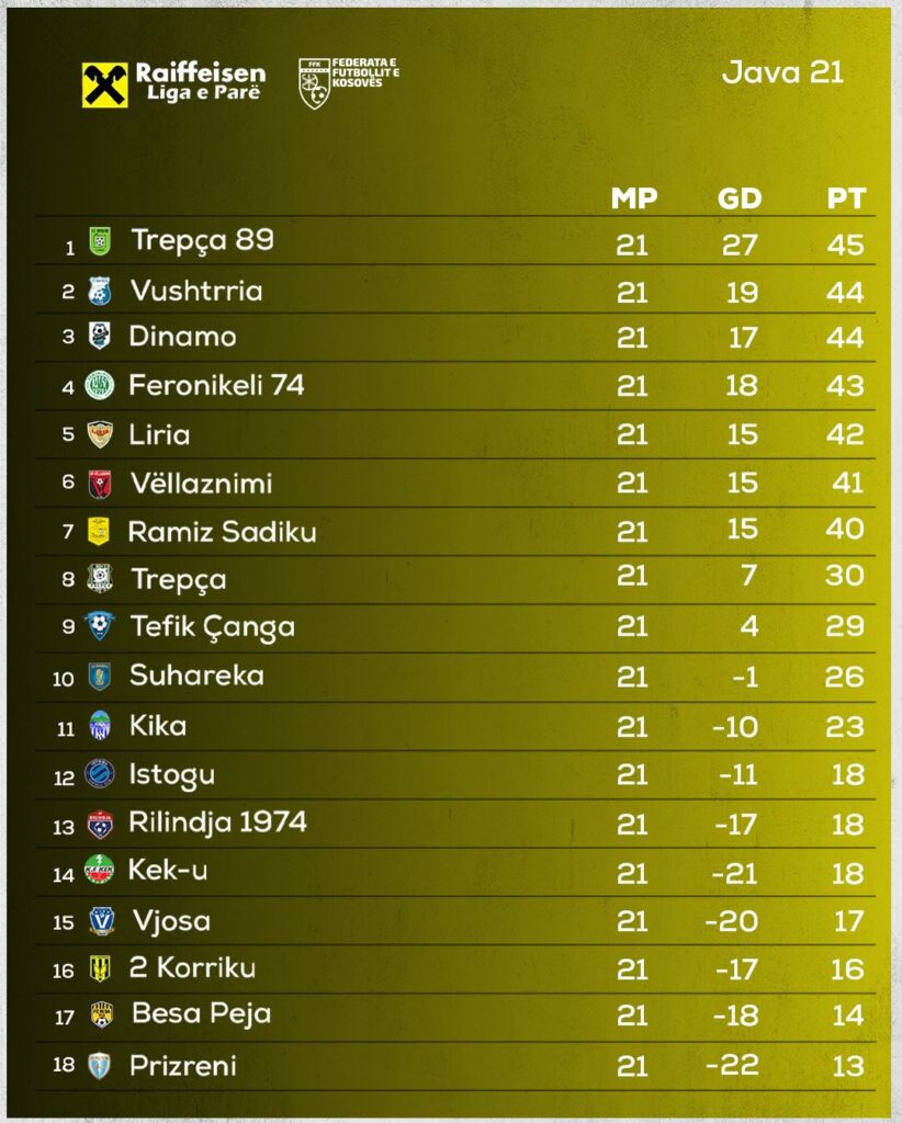 Tabela e plotë dhe rezultatet e xhiros së 21-të 👇