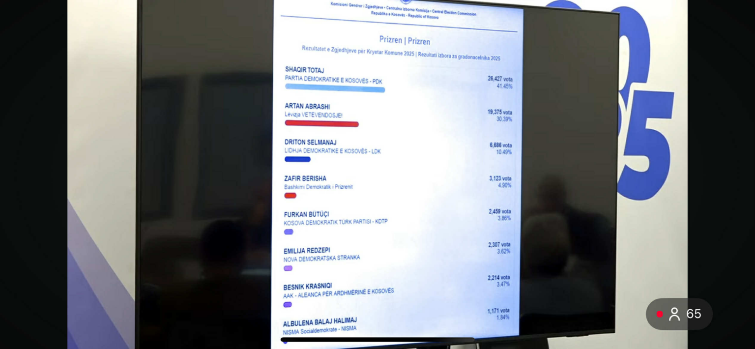 Rezultatet përfundimtare: Prizreni në balotazh, Totaj 41.45 për qind, Abrashi 30.39 për qind