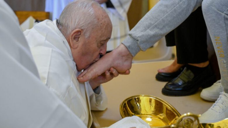 I ulur në një karrige me rrota, Jorge Bergoglio lau këmbët e të burgosurave. Disa u përlotën nga gjesti dhe më pas ai ua fshiu këmbët me një peshqir dhe i puthi, raporton cnn.