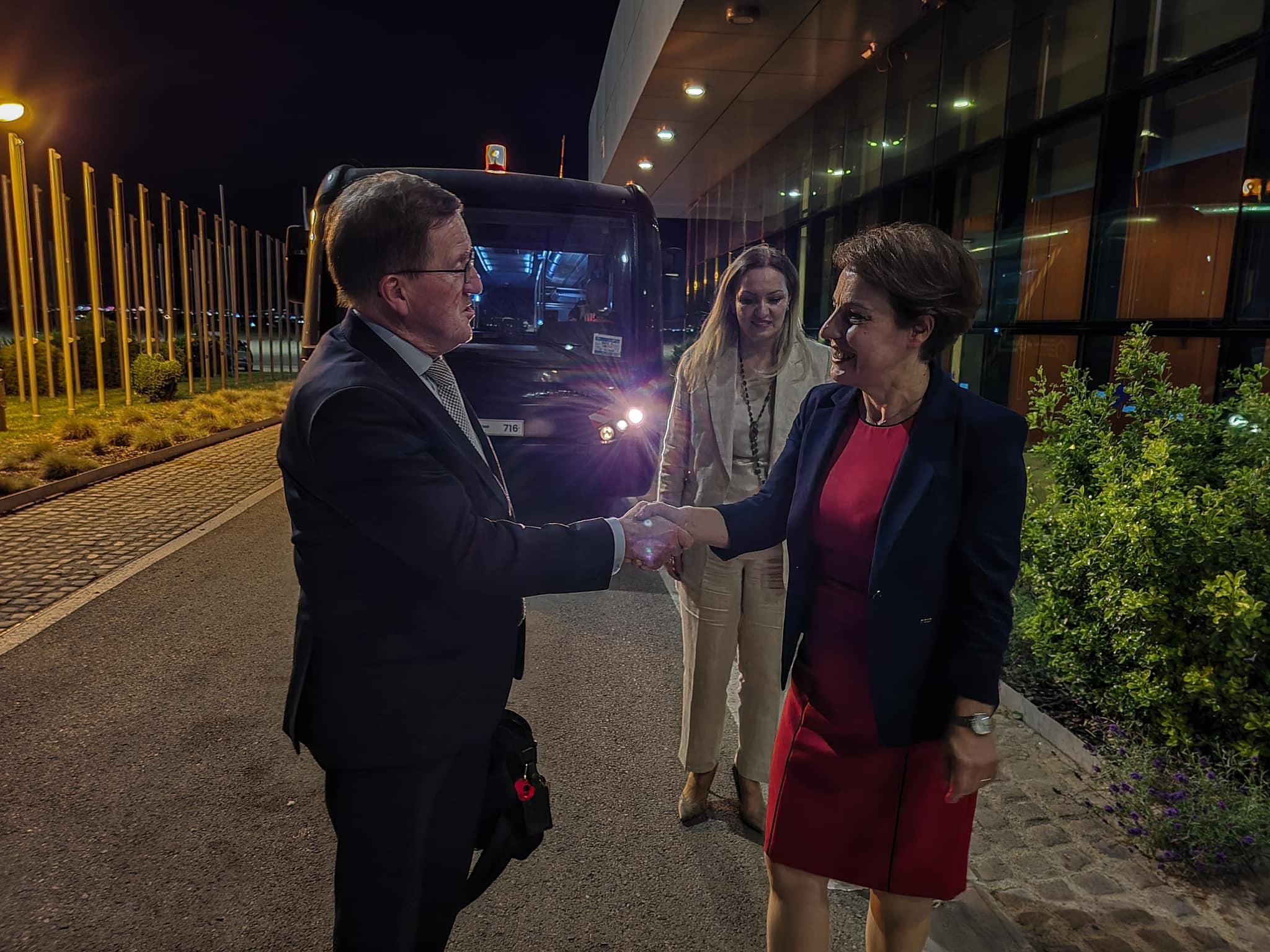 Në orët e vona të mbrëmjes, kryediplomatja Donika Gërvalla ka pritur në Aeroportin e Prishtinës “Adem Jashari”, Lordin George Robertson.