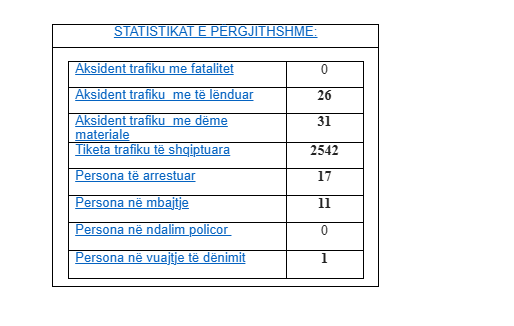 Po ashtu, shton PK-ja, kanë ndodhur 57 aksidente trafiku, ku 31 kanë qenë me dëme materiale, e 26 me të lënduar.