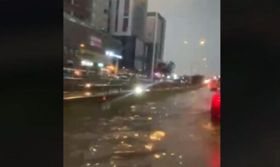 Rruga kryesore në “Emshir” është bërë sikur të ishte lumë, pas shiut të madh.