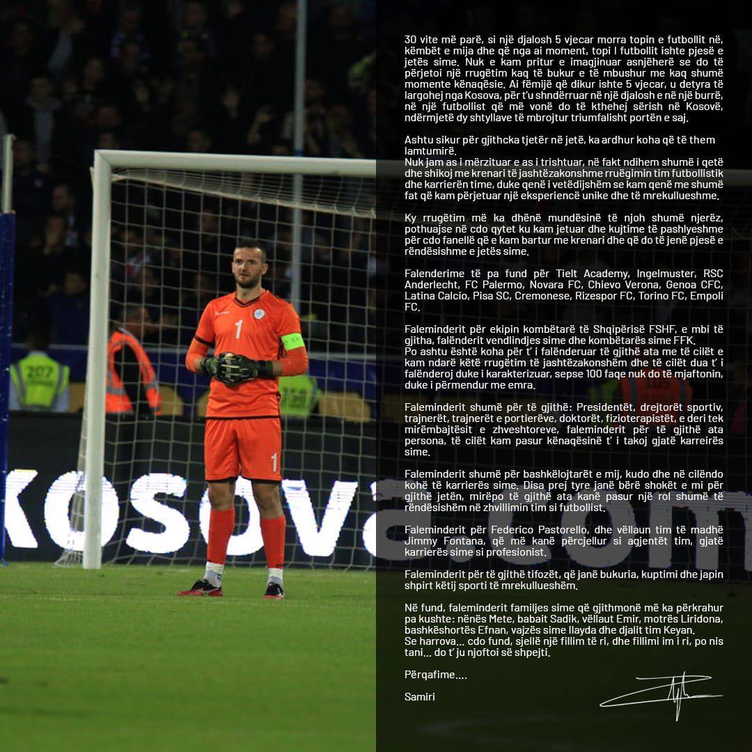 Samir Ujkani i jep fund futbollit aktiv, kjo është letra lamtumirëse